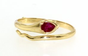 Anello serpente a un giro testa rubino e occhi diamanti ORO 750‰ g 1,91 - ct 0,16 - oro Giallo