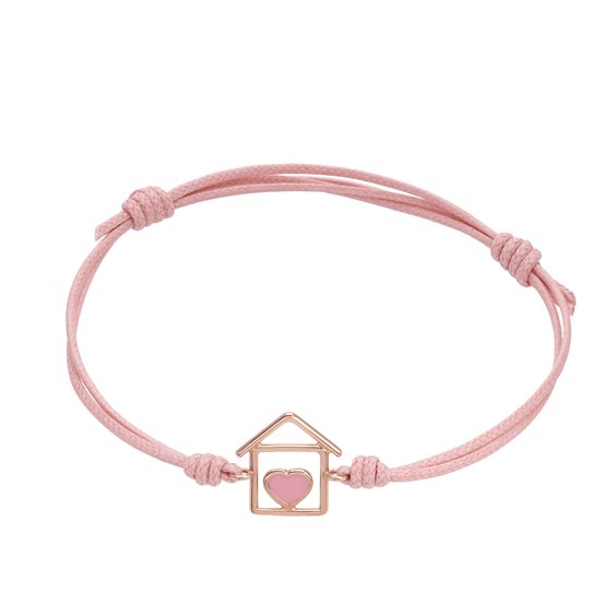 Bracciale cordino casa media cuore smaltato rosa oro 750‰ g. 0,7 - oro Rosa