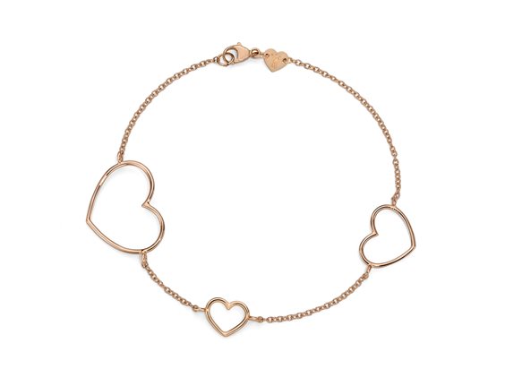 Bracciale catena 3 cuori filo diversi ORO 750‰ 2,2 g - oro Rosa