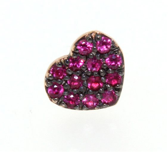 Orecchini tappabuco cuore pave' con rubini - SINGOLO ORO 750‰ g 0,89 - ct 0,13 - oro Rosa