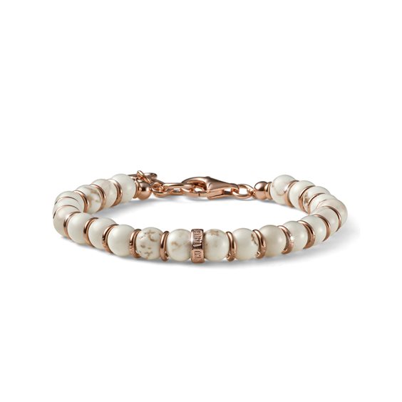 • Bracciale donna cm.16+3 in Argento rosa 925‰ • Aulite bianca ø 6 • Chiusura moschettone • Interamente realizzato a mano • Made in Italy • Disegnato per Maria Cristina Sterling da Alessandro Magrino