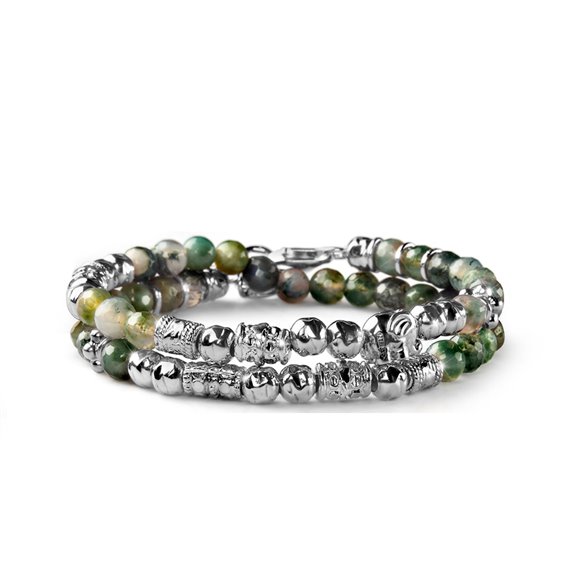 Bracciale due giri UOMO in Argento 925‰ Misura cm. 39+3 chiusura moschettone Agata muschiata mm. 6 Interamente realizzato a mano Made in Italy Disegnato per Mariacristinasterling da Alessandro Magrino