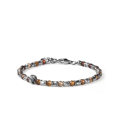 Bracciale Snake cm. 19+3 con pepite Argento 925‰, Agata marrone mm 4 Interamente realizzato a mano con chiusura a mochettone, Made in Italy e disegnato per Mariacristinasterling da Alessandro Magrino