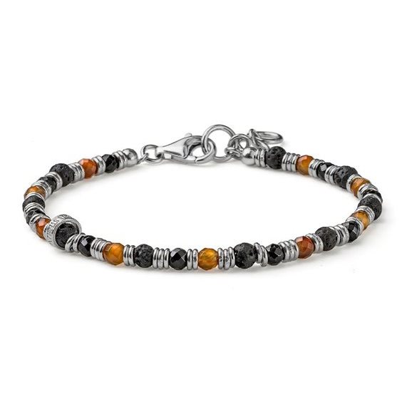• Bracciale Snake classic style in Argento 925‰ • Perle di lava, agata marrone e agata nera ø 4 • Chiusura moschettone • Interamente realizzato a mano • Made in Italy • Disegnato per Maria Cristina Sterling da Alessandro Magrino