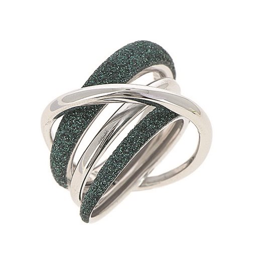 ANELLO IN AGENTO 925 RODIATO CON POLVERE VERDE MOLLA INTERNA PER STRINGERE DI 2 MISURE