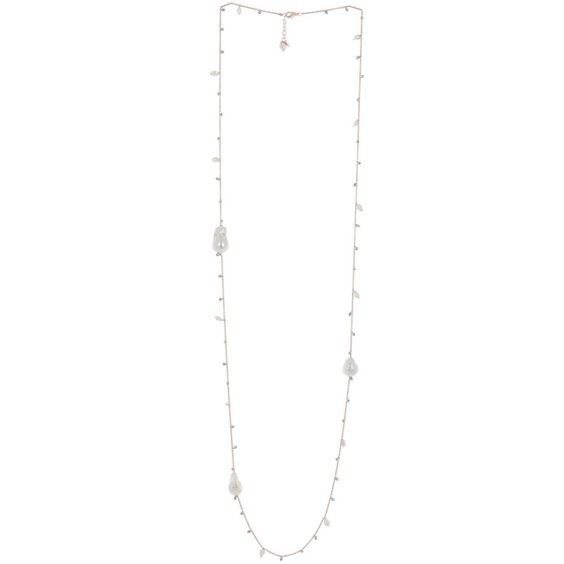 Collana lunga 120 cm in argento placcato oro rosa, con perle di acqua dolce ed ematite.