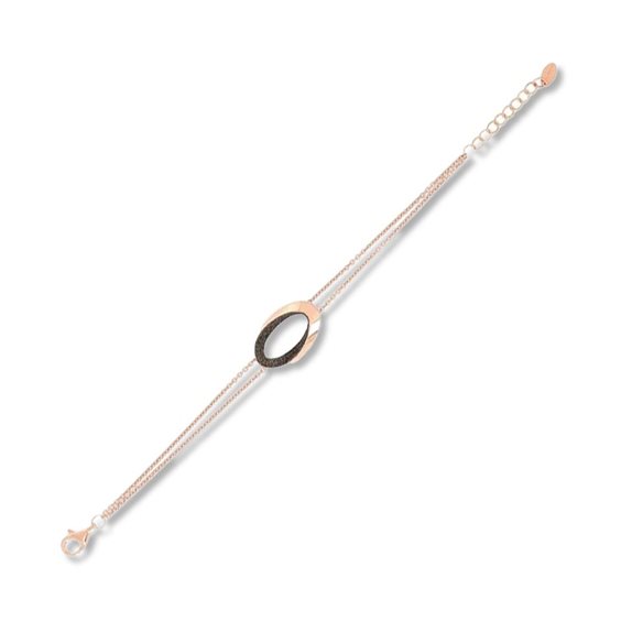 Bracciale in argento 925 rosè con elemento centrale decorato da polvere bronzo lunghezza variabile da cm 17.5 a 20.5