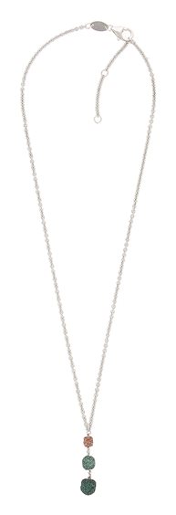 GIROCOLLO IN ARGENTO 925 RODIATO CON PENDENTE FORMATO D A2 SFERE IN POLVERE VERDE E UNA IN POLVERE DORATA