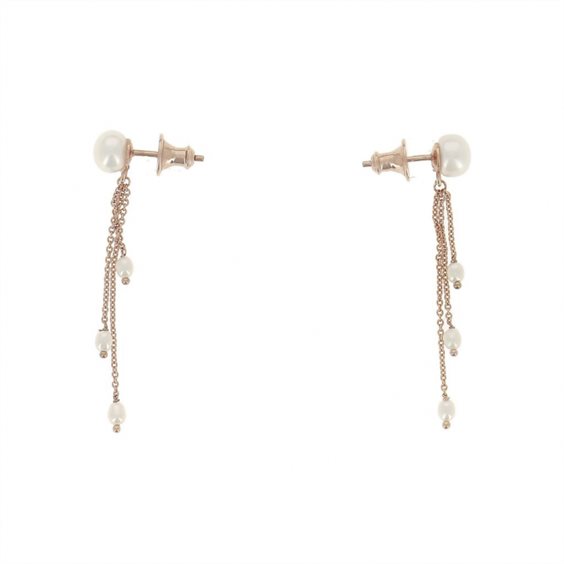 ORECCHINI PENDENTI IN ARGENTO ROSE' E PERLE DI ACQUA DOLCE.