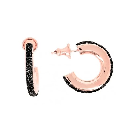 Orecchino a cerchio in argento 925 rosè con particolare in polvere nera Diametro cm 2.00