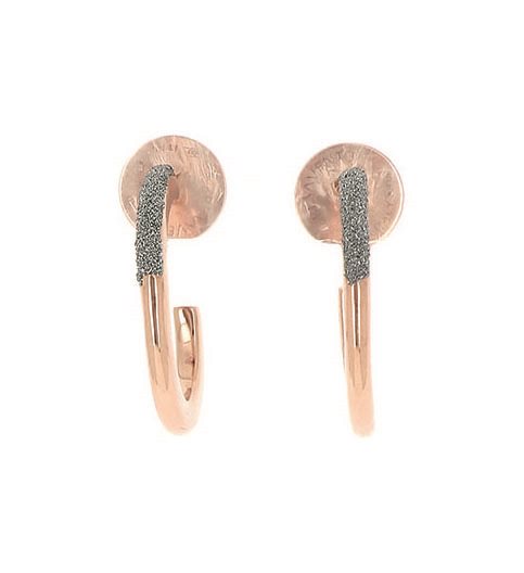 ORECCHINI A CERCHIETTO IN ORO ROSA 18 KT CON PARTICOLARE IN POLVERE DI DIAMANTE GRIGIA DIAMETRO CM 2.00