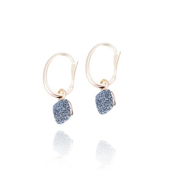 ORECCHINI A MONACHELLA IN ORO BIANCO 18 KT CON POLVERE DI DIAMANTE GRIGIO CHIARO