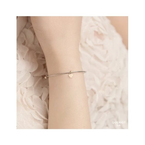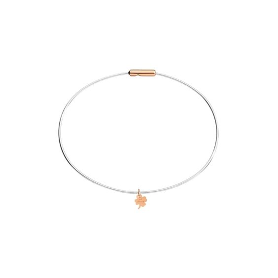 Bracciale rigido bangle in acciaio e oro rosa 18kt con con pendente quadrifoglio MISURA INTERNA CM 6.00