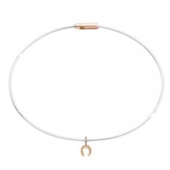 Bracciale Queriot Mon Porte-Bonheur oro rosa 18k e acciaio, con micro ciondolo a forma di ferro di cavallo. Misura bracciale: CM 6 interno