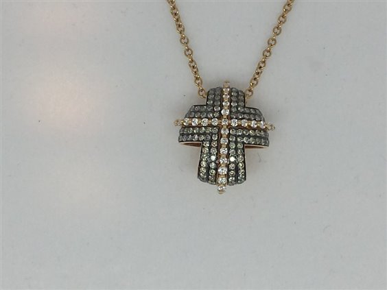 Collana in oro rosa 750 e ciondolo a croce in oro rosa con diamanti bianchi e diamanti brown. oro g. 7,70 diamanti bianchi ct 0,21 diamanti brown ct 0.50 lunghezza regolabile cm 38, cm 42, cm 46