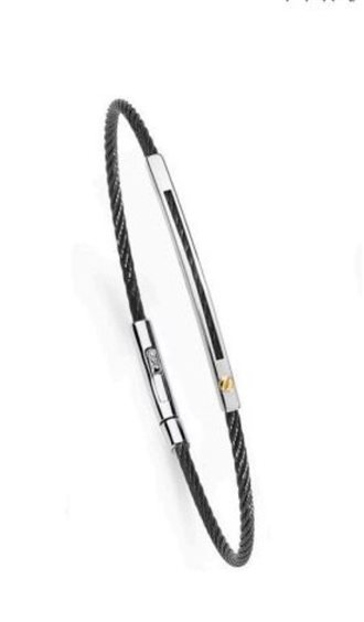 Bracciale rigido in acciaio nero con targa in acciaio lucido e borchia in oro giallo 18 kt Chiusura a pulsante
